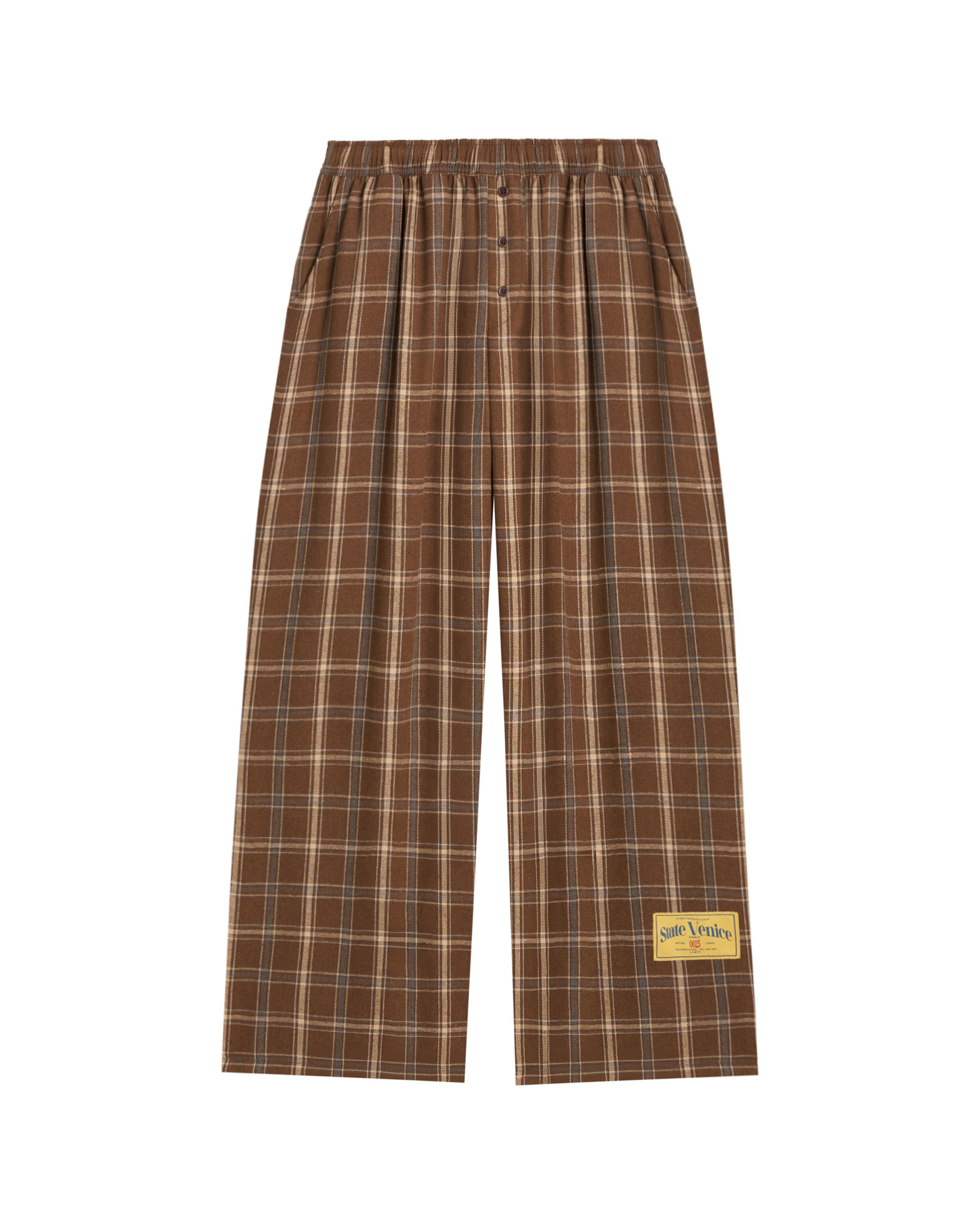 Фланелевые брюки в клетку. Боковые карманы, жаккардовая нашивка с логотипом, свободный крой.