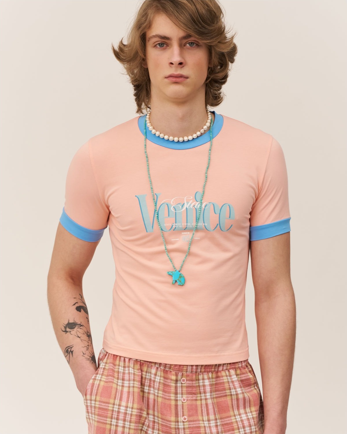 Футболка из облегченного хлопка облегающего силуэта с контрастной окантовкой.