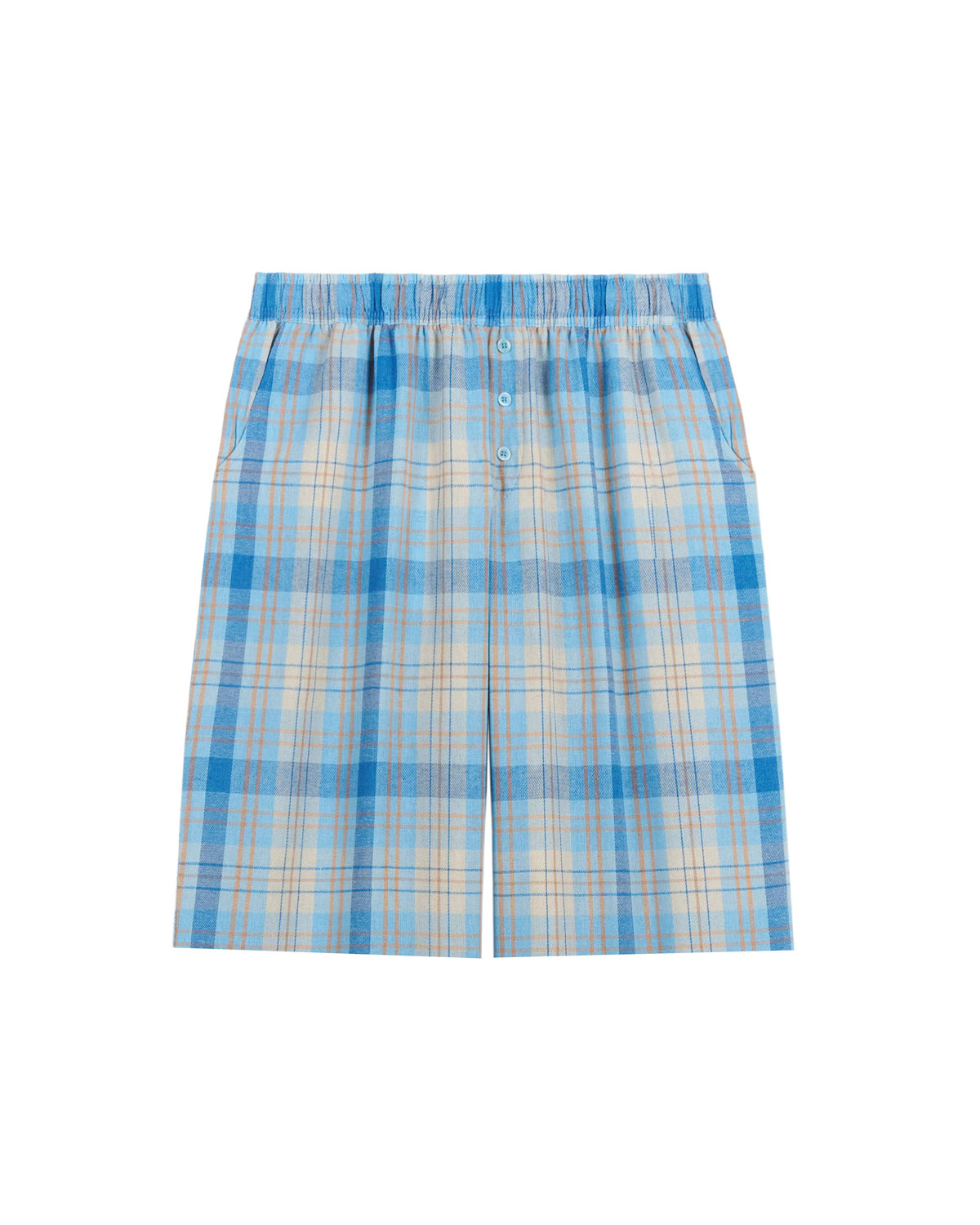 Удлинённые фланелевые шорты в клетку свободного кроя с эластичным поясом.